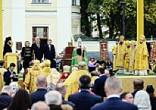 Святейший Патриарх Кирилл в Северной столице возглавил крестный ход с мощами благоверного князя Александра Невского и совершил молебен на площади, носящей имя святого