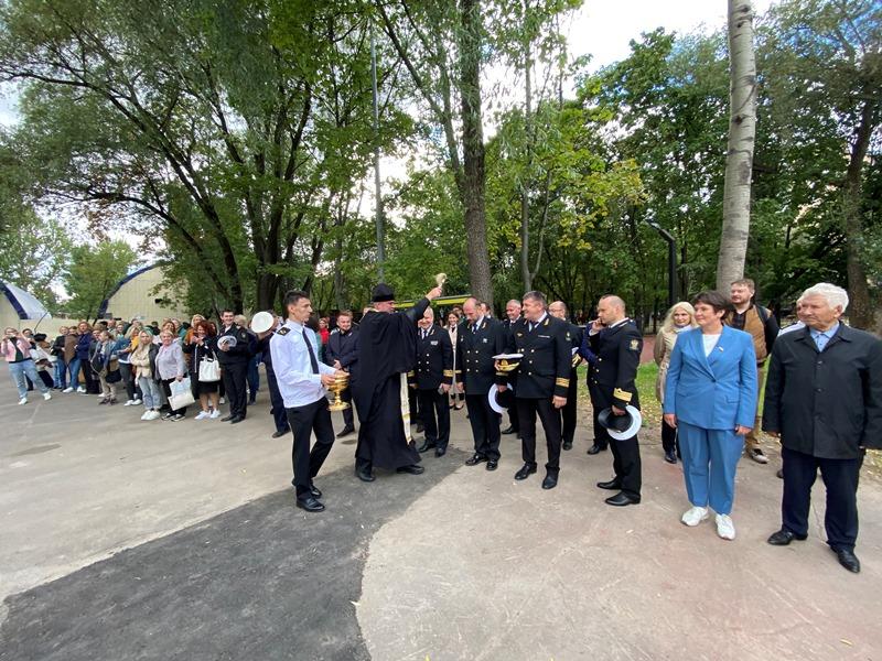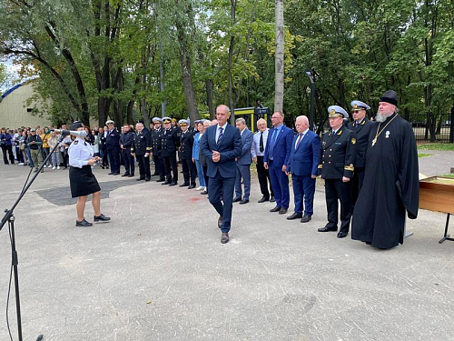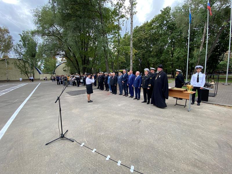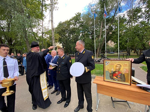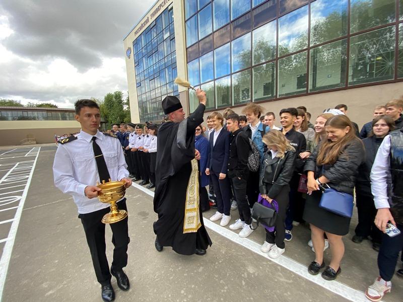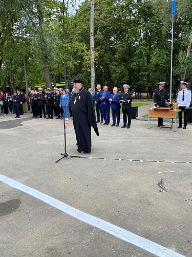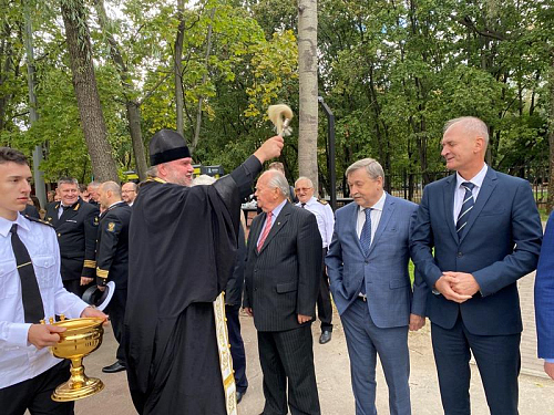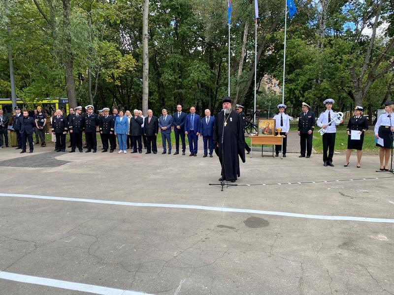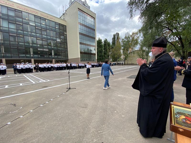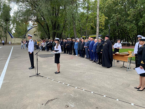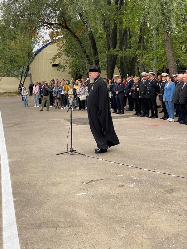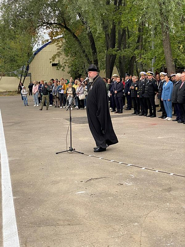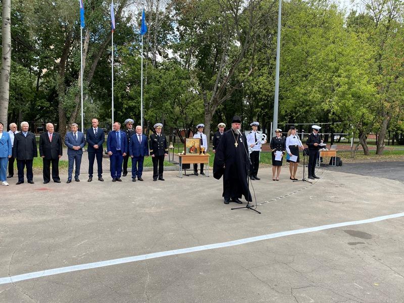 Торжественное построение по случаю Дня знаний окончилось благословением настоятеля храма святого праведного воина Феодора Ушакова игумена Дамиана (Залетова), который обратился к учащимся, преподавателям, родителям и гостям со словом приветствия и по традиции окропил всех Святой водой. В своем слове игумен Дамиан обратил внимание всех присутствующих на пример жизни святого непобедимого адмирала Флота Российского Феодора Ушакова и подарил Академии его икону.