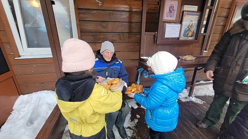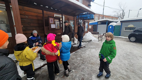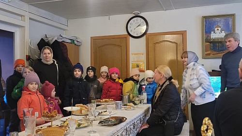 Воспитанники детского сада и их родители напекли пироги и праздничные печенья, которые привезли в храм для раздачи и поздравления