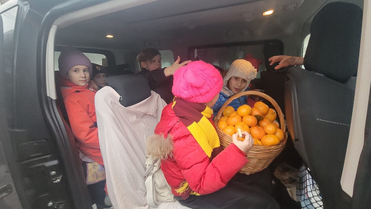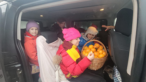 Далее от прихода, детям настоятель храма передал корзину мандаринов и поздравил всех с праздником!
