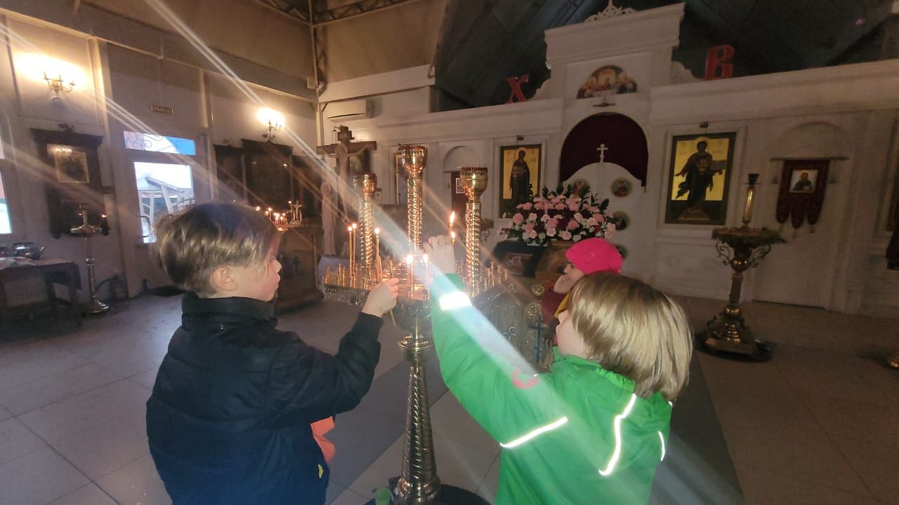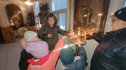 Детки сами вручали сладкие подарки бездомным. Далее участники акции прошли в храм, где настоятель раздал всем свечи. Перед иконой святителя Николая совершили молитву и поставили свечи, священник Максим Глухих рассказал детям о житии святителя Николая и о празднике.