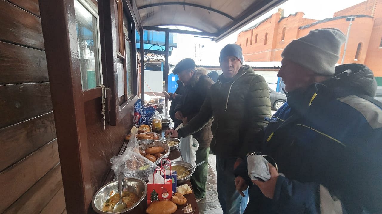 бедных, обездоленных, бездомных людей, приходящих в храм сщмч. Серафима за бесплатной, горячей едой.