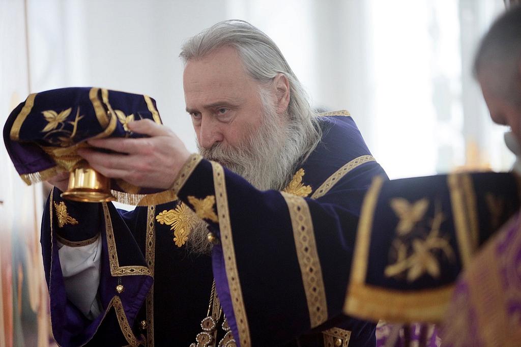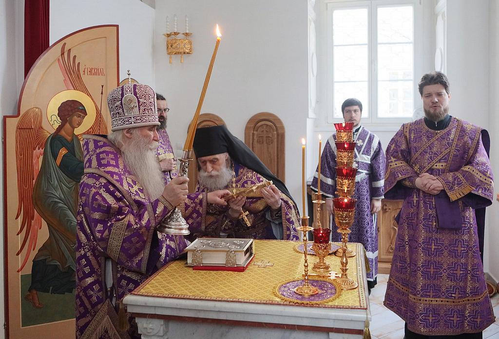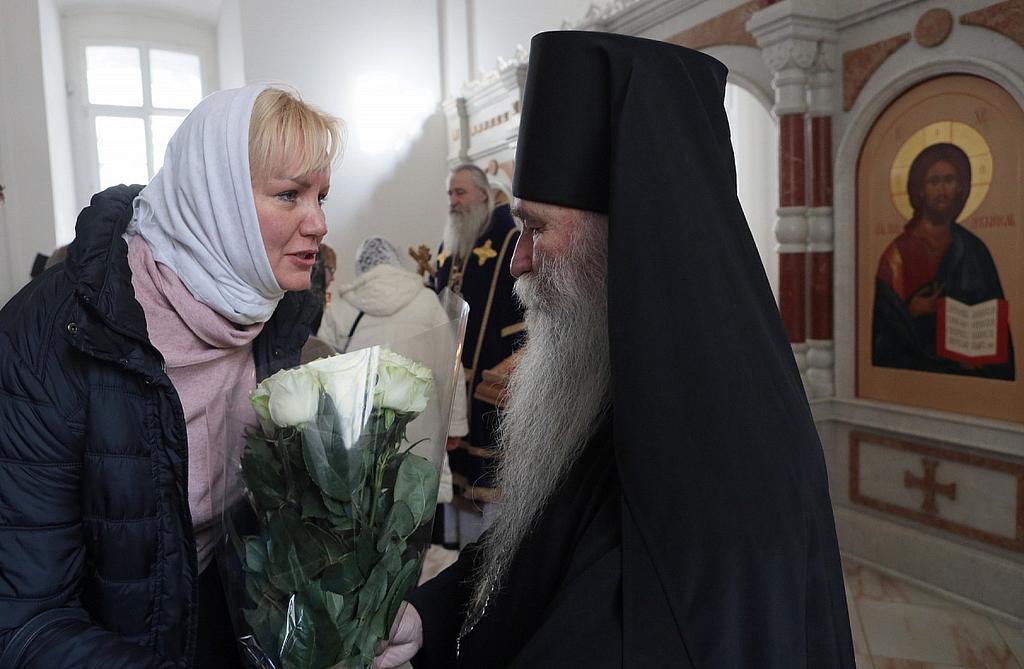В этот день Божественную литургию свт. Иоанна Златоуста в монастырском храме Михаила Архангела возглавил председатель Синодального отдела по монастырям и монашеству архиепископ Каширский Феогност.
