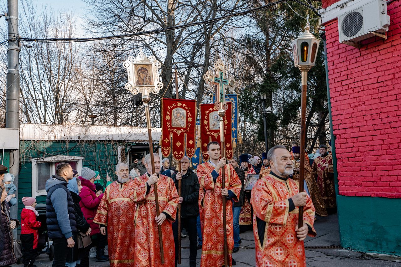 Его Высокопреосвященству сослужили: протоиерей Анатолий Кожа, Благочинный храмов Параскво-Пятницкого округа города Москвы, настоятель храма Великомученицы Параскевы Пятницы в Качалове, протоиерей Александр Зорин, настоятель храма Казанской иконы Божией Матери в Теплом Стане, иерей Николай Кривотулов, клирик храма святых благоверных князей Бориса и Глеба в Зюзино, диакон Николай Платонов, клирик Богоявленского кафедрального собора в Елохове, клирики храма и духовенство Юго-Западного викариатства.