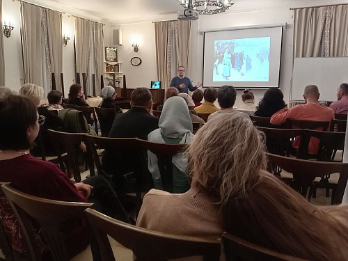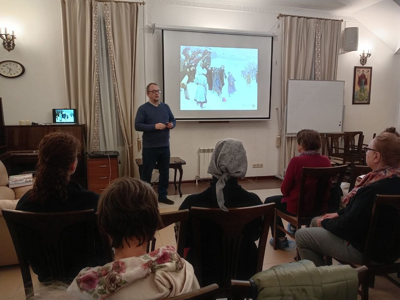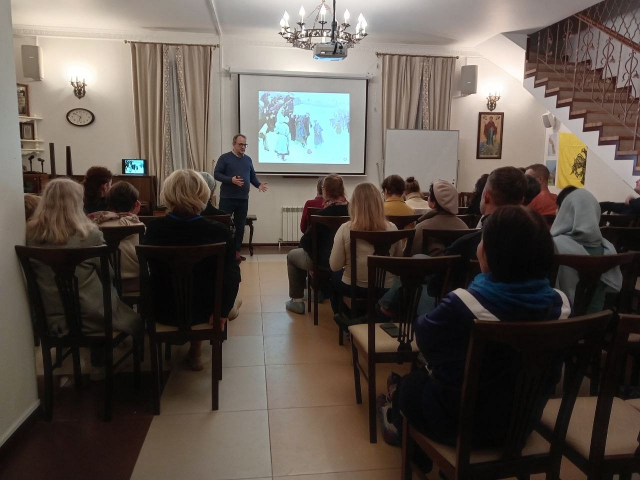 5 октября 2025 года в храме Всех преподобных отцев Киево-Печерских в Старых Черёмушках прошла очередная встреча с историком искусств, бакалавром богословия Александром Иосифовичем Архангельским. Среди собравшихся оказалось немало постоянных участников бесед с искусствоведом, но и новые слушатели, в том числе школьники, были сразу вовлечены в коллективные размышления на тему «Образ Руси в творчестве Бориса Кустодиева».