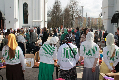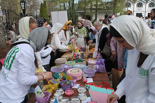 Атмосфера ярмарки была наполнена теплом и радостью. Участники клуба поздравили настоятеля храма епископа Алексия с наступающим праздником Пасхи, что добавило еще больше значимости этому событию.