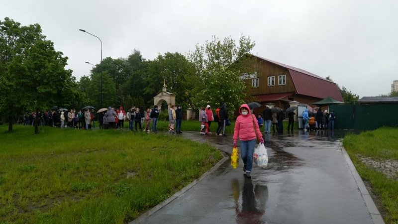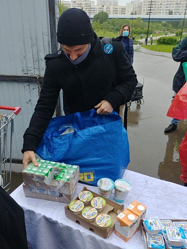 Продукцию раздавали волонтеры социальной службы храма на улице, с учетом всех необходимых мер безопасности.