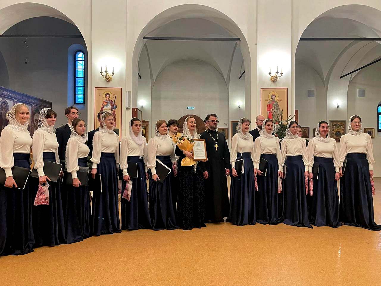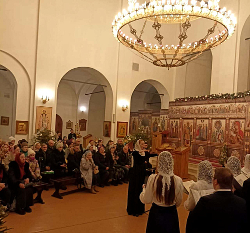художественным руководителем и дирижером, которого является Елена Сидорычева. В ходе выступления звучали не только Богослужебные песнопения, но и колядки, как общеизвестные, так и собственного сочинения учащихся.