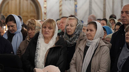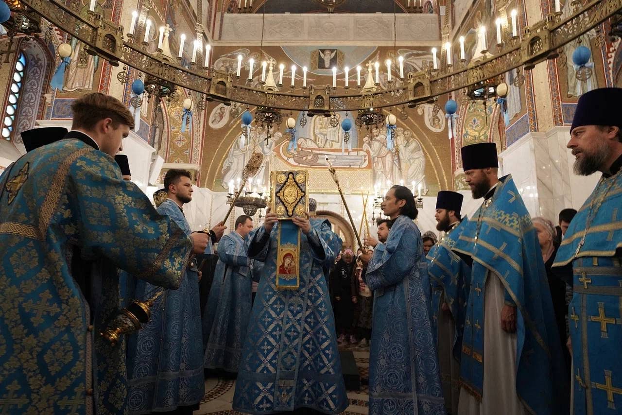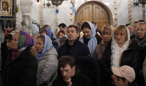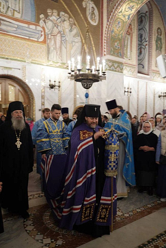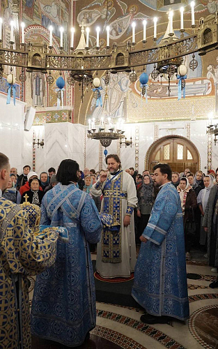 В завершение богослужения был совершен крестный ход и славление празднику Покрова Пресвятой Богородицы, после чего архиепископ Фома обратился к духовенству и прихожанам с приветственным словом.