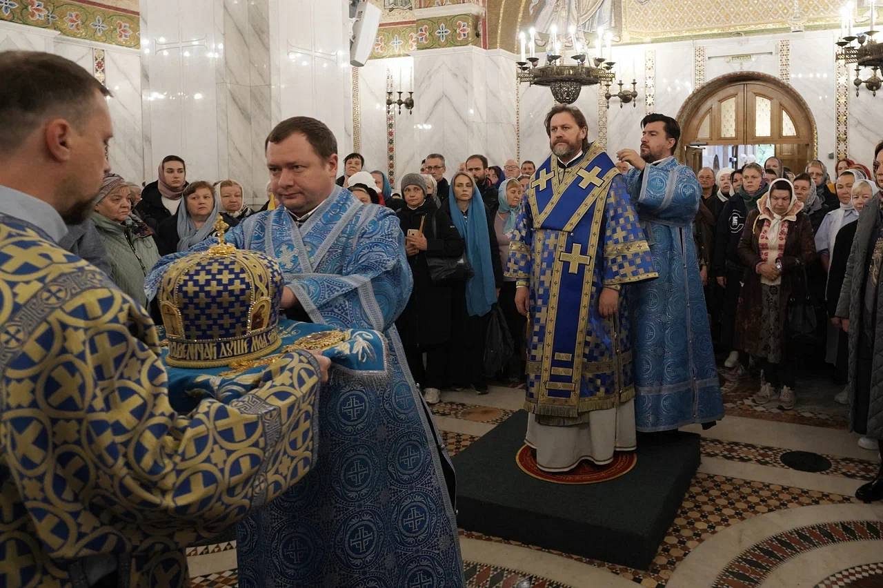 Богослужебные песнопения исполнил праздничный хор Покровского храма под управлением Дарьи Гаврус.