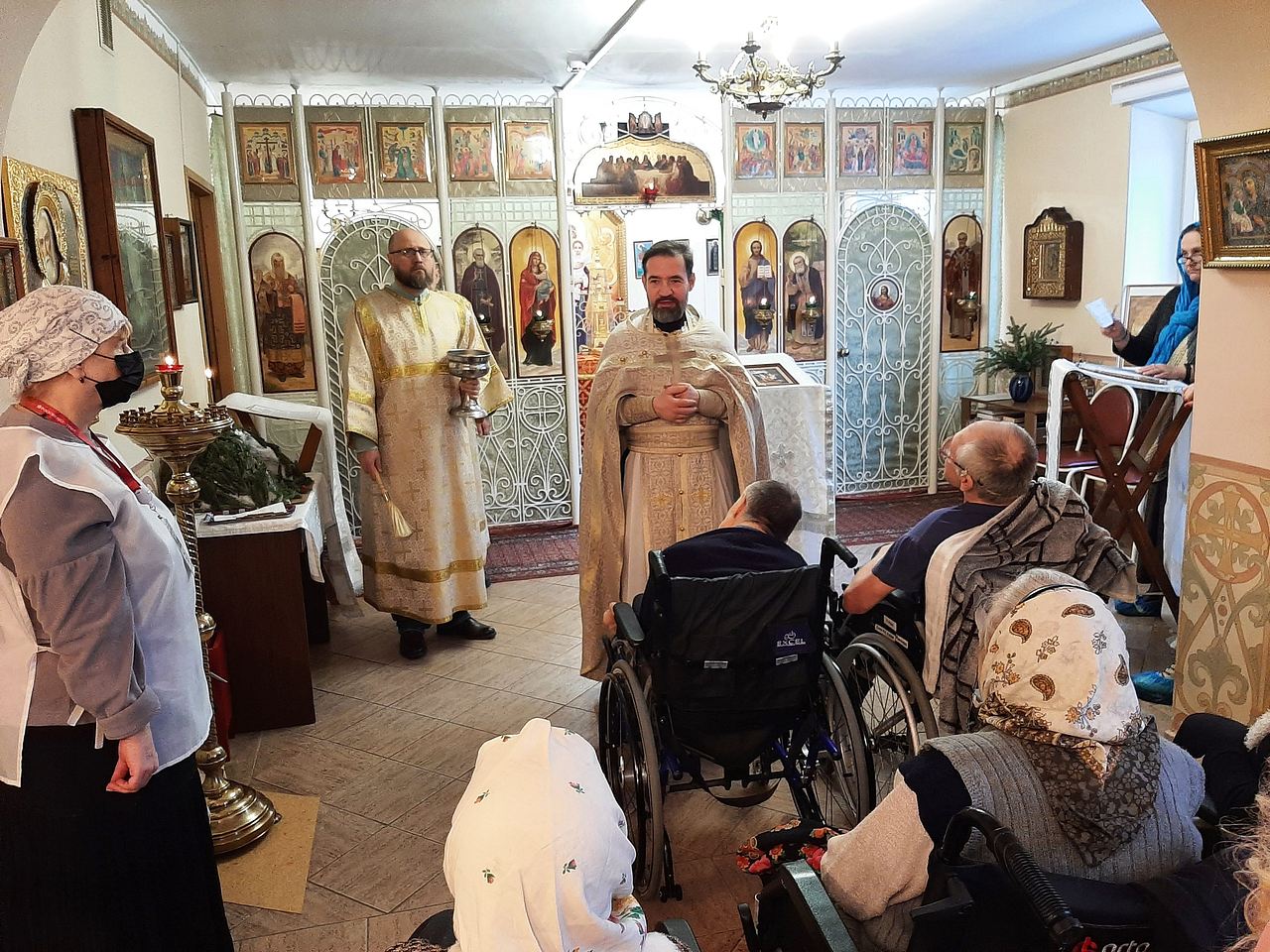 При помощи добровольцев из числа прихожан к Таинству Причастия смогли подготовиться 24 человека в Храме и 7 тяжело болящих на этажах.