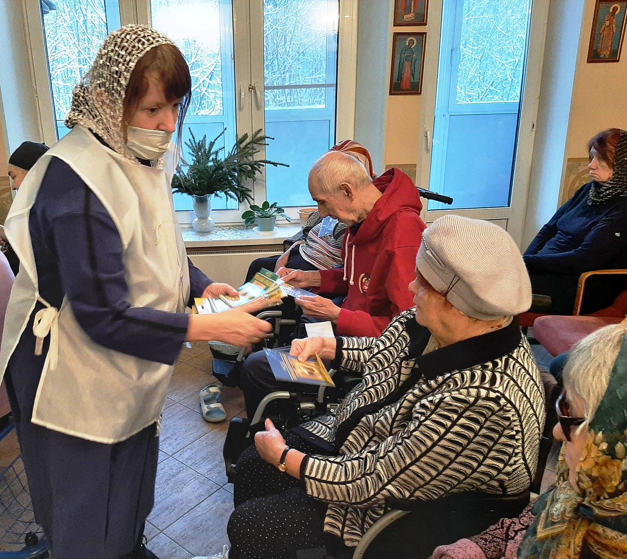 Настоятель поздравил всех с наступающим праздником Рождества Христова. Добровольцы вручили присутствующим подарки.