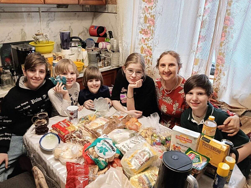 Благодаря помощи прихожан в марте было передано продуктовых наборов в объеме 150 кг в подопечные семьи, в которых воспитывается от 6 до 11 детей, а также в семьи, где есть дети-инвалиды.