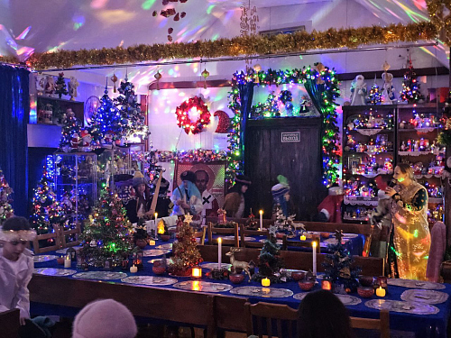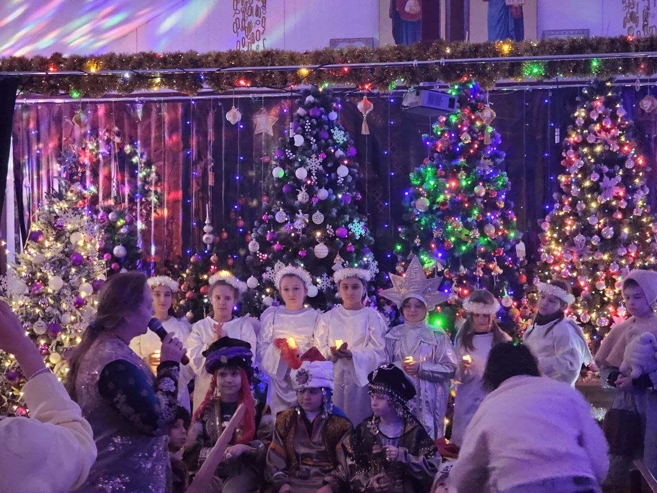 Под волшебную музыку дети входят в помещение домика, освещаемое лишь огоньками новогодних гирлянд. Всё вокруг украшено елками, новогодними игрушками и огоньками! Трещат дрова в русской печи. На сцене под елкой стоят деревянные ясли, а вокруг светящиеся фигуры олененка, барашка, медведя. Всё говорит, напоминает и погружает в атмосферу той ночи, той необыкновенной ночи, в которую пришел на Землю Христос...