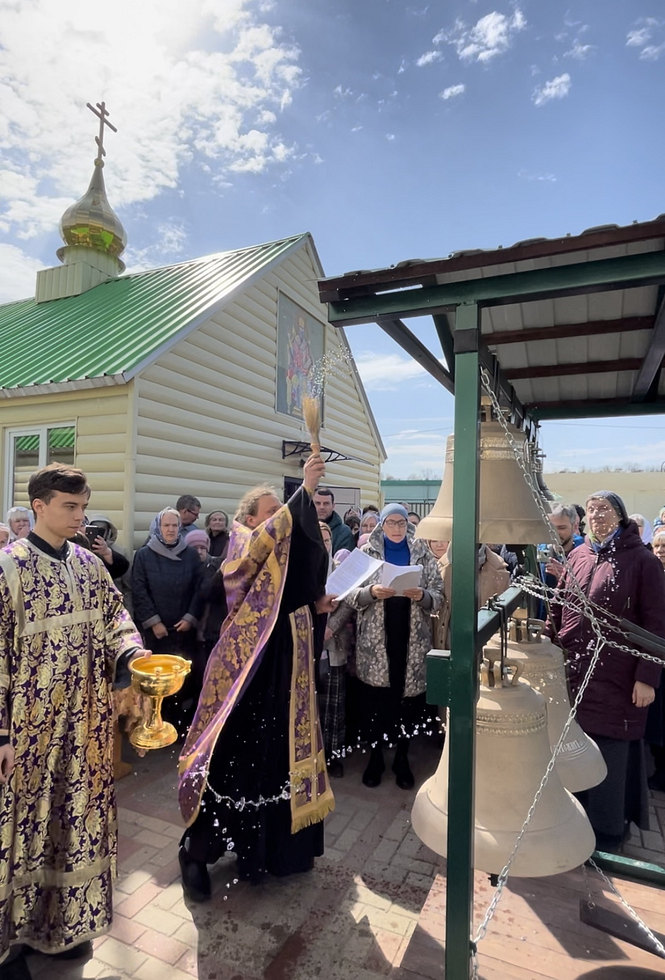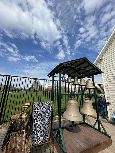 21 апреля 2024 г., в Неделю 5-ю Великого поста, преподобной Марии Египетской, в храме Святителя Спиридона, епископа Тримифунтского, Чудотворца, в Южном Бутове, по окончании Божественной Литургии, совершен чин освящения колоколов для звонницы.
