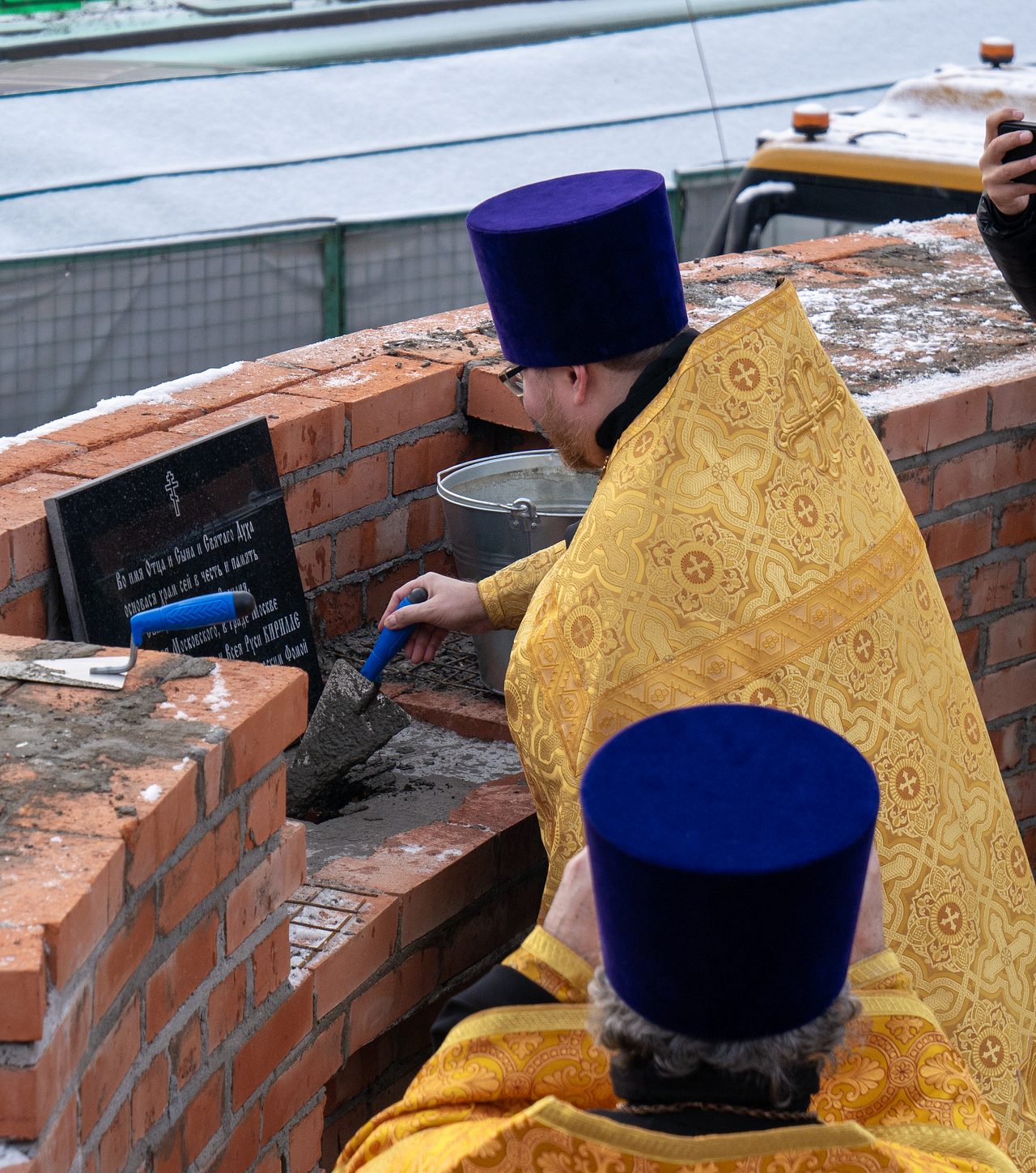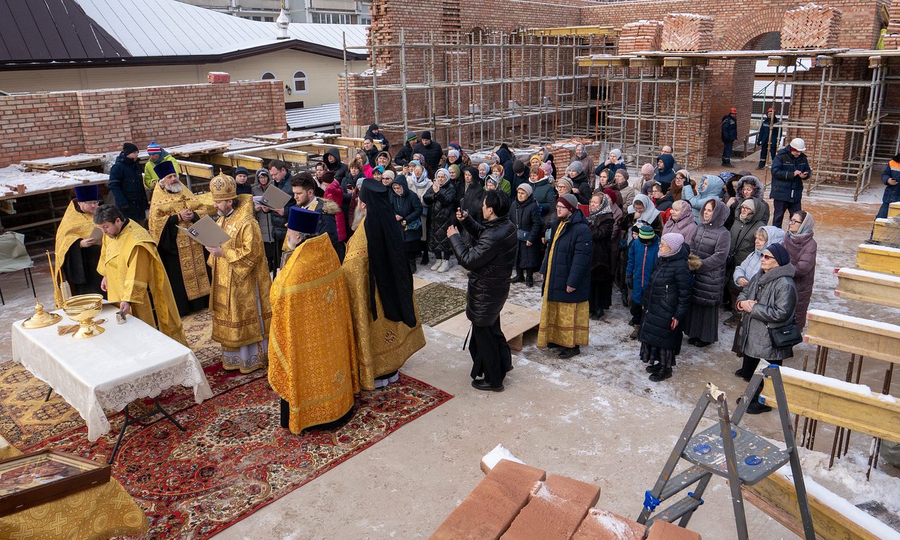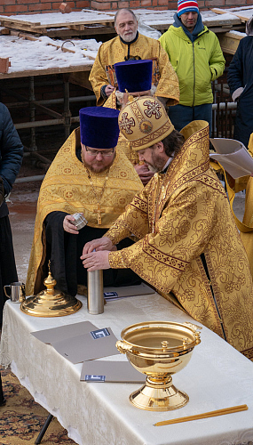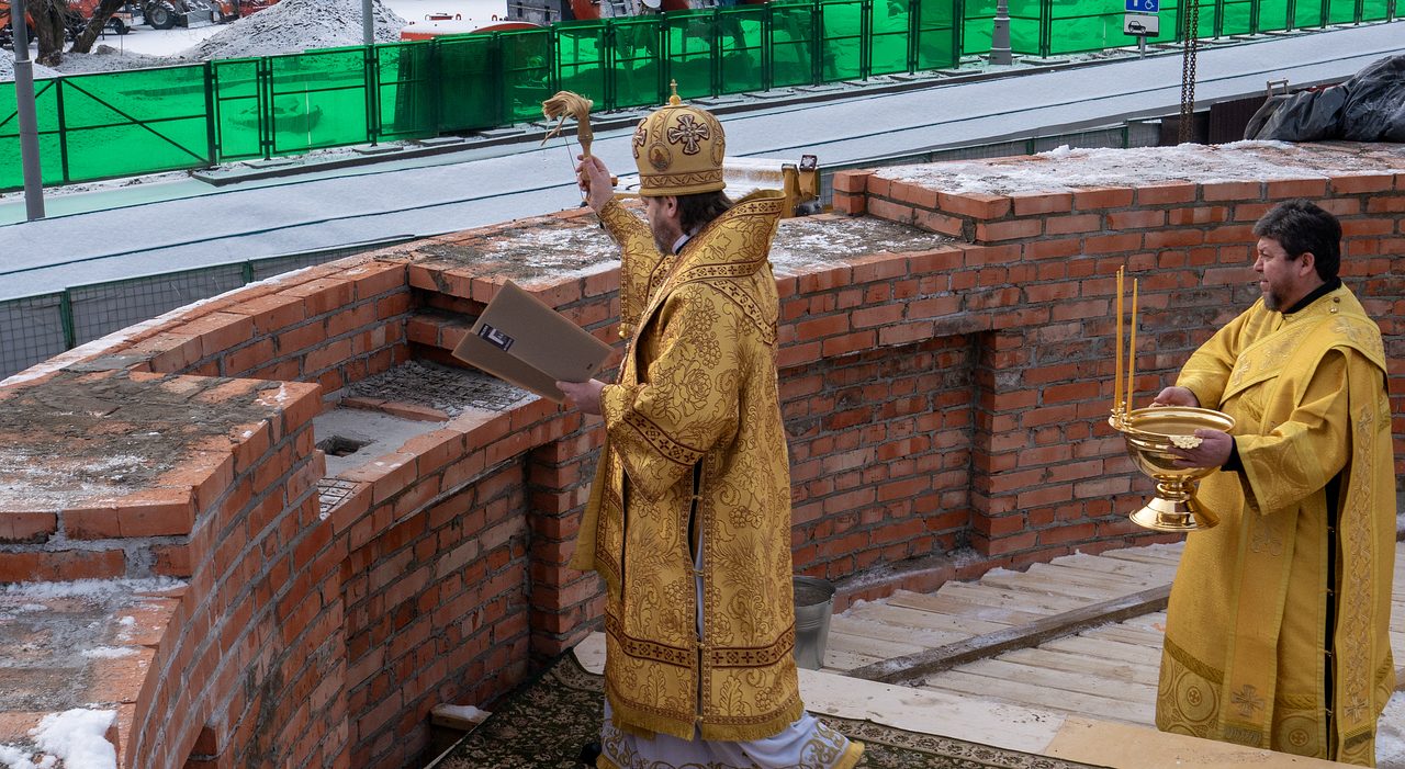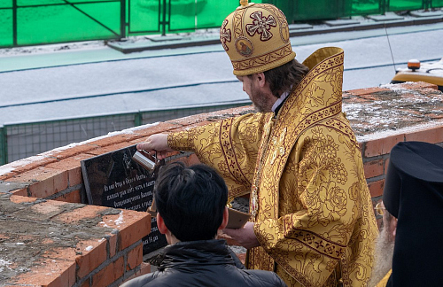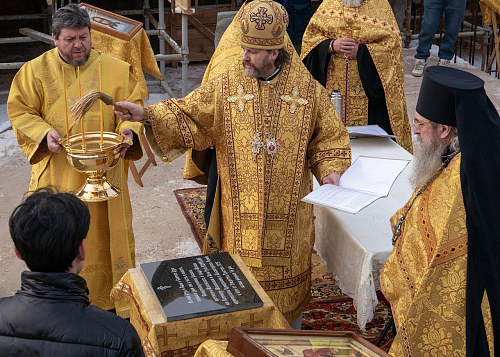 После окончания богослужения состоялся чин освящения закладного камня в основание строящегося храма.