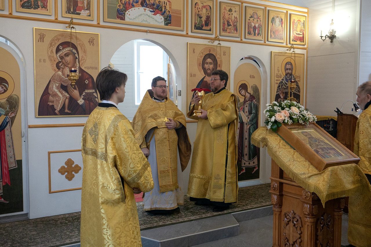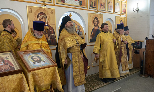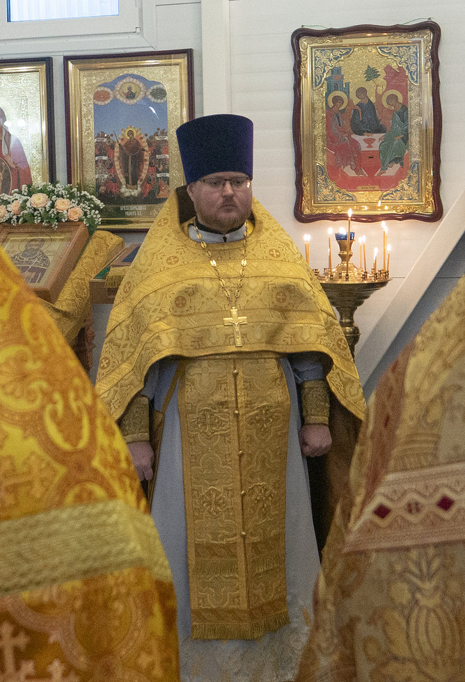 Ему сослужили благочинный Андреевского благочиния города Москвы протоиерей Николай Карасев, настоятель храма Живоначальной Троицы в Старых Черемушках, архимандрит Мелхиседек (Артюхин), настоятель храма Покрова Пресвятой Богородицы в Ясеневе, протоиерей Виктор Гусев, настоятель храма иконы Божией Матери "Нечаянная радость" в Чертанове и клирик Богоявленского кафедрального собора протодиакон Николай Платонов.