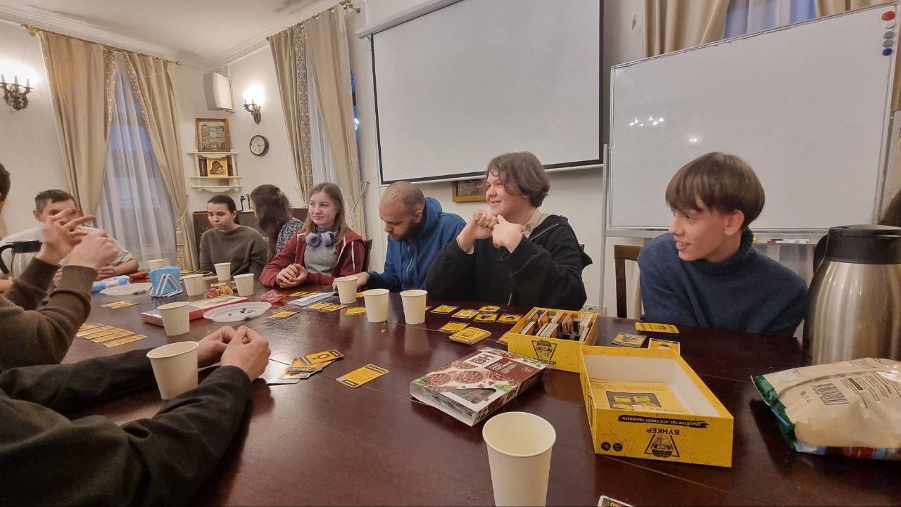 Молодёжь прихода тепло и радушно встретила гостей чаем и угощениями. В уютной атмосфере за общим столом участники смогли познакомиться, поделиться своими историями, задать вопросы и обсудить общие интересы. Встреча продолжилась за настольной игрой, что помогло участникам лучше узнать друг друга и сблизиться.