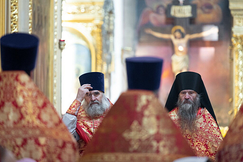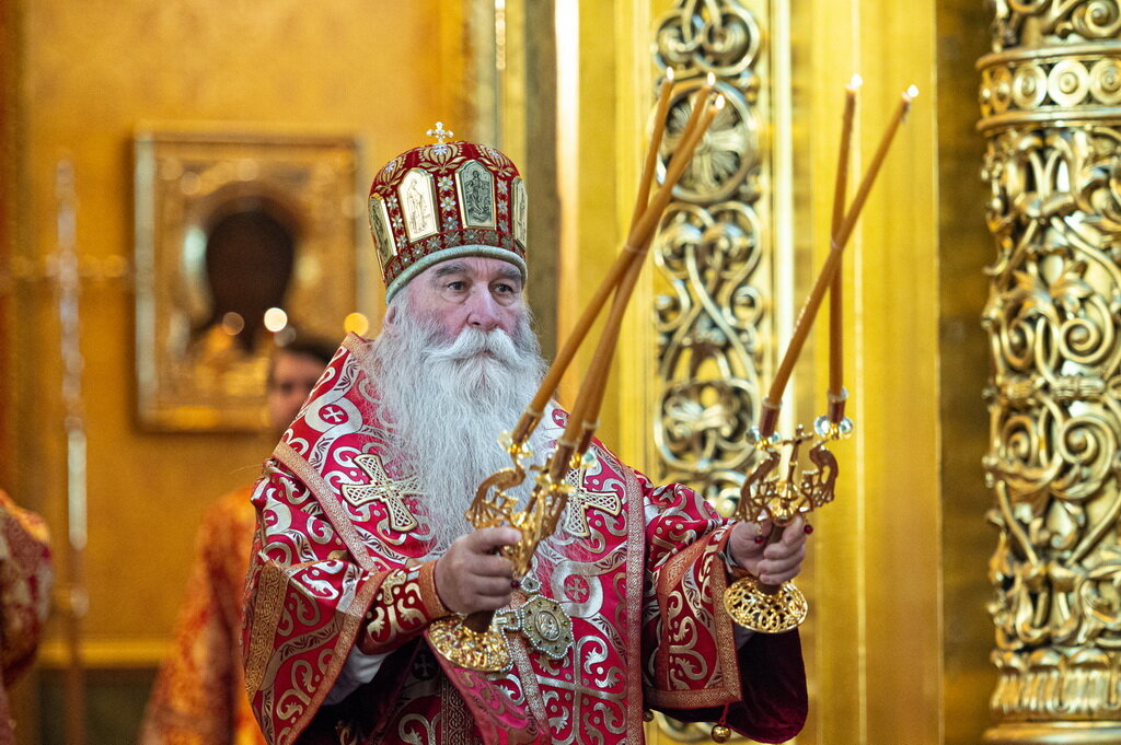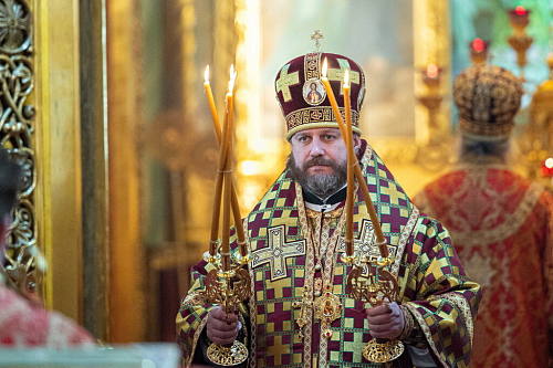 Владыке Дионисию сослужили епископ Мытищинский Феофилакт и настоятель Богоявленского собора епископ Одинцовский и Красногорский Фома.