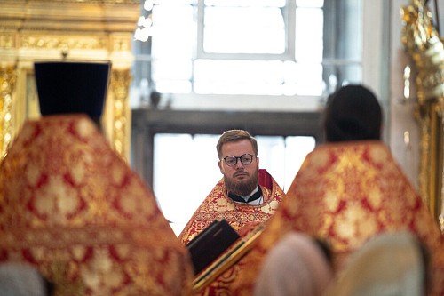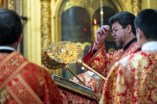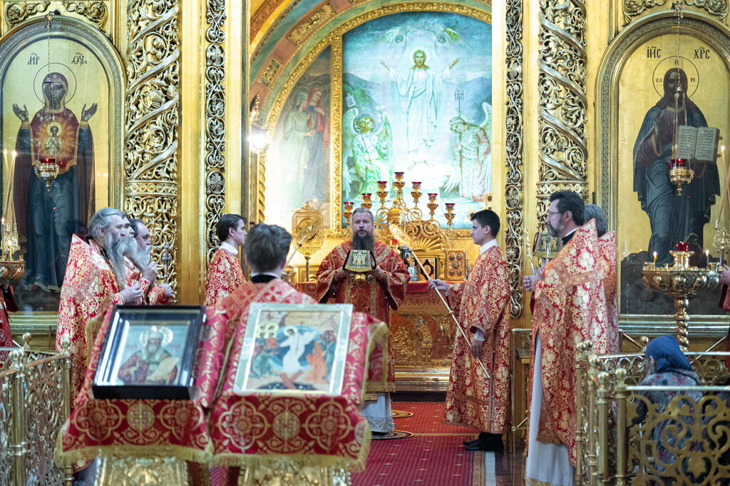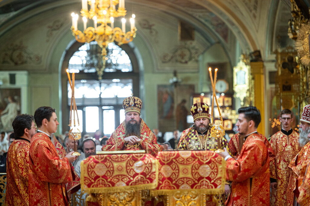 Владыкам сослужили протопресвитер Владимир Диваков, Секретарь Патриарха Московского и всея Руси по г. Москве, архимандрит Алексий (Вылажанин), благочинный Петропавловского округа Московской городской епархии, настоятель храма в честь святых апостолов Петра и Павла в Лефортове, протоиерей Алексий Круглик, настоятель храма Вознесения Господня на Большой Никитской (Малое Вознесение), клирики Собора, московское духовенство и студенты магистратуры Московской Духовной Академии.