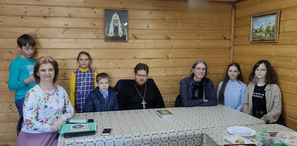 Настоятель храма, иерей Евгений Марков побеседовал с выпускниками воскресной школы об их любимых книгах и значении книги в жизни каждого человека.