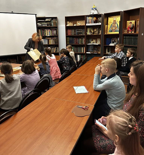 Затем в школьной библиотеке ученики познакомились с деятельностью первопечатника диакона Ивана Федорова и историей создания первой русской печатной книги — Апостол. А еще у ребят появилась возможность познакомиться со старинными изданиями, хранящимися в библиотеке.