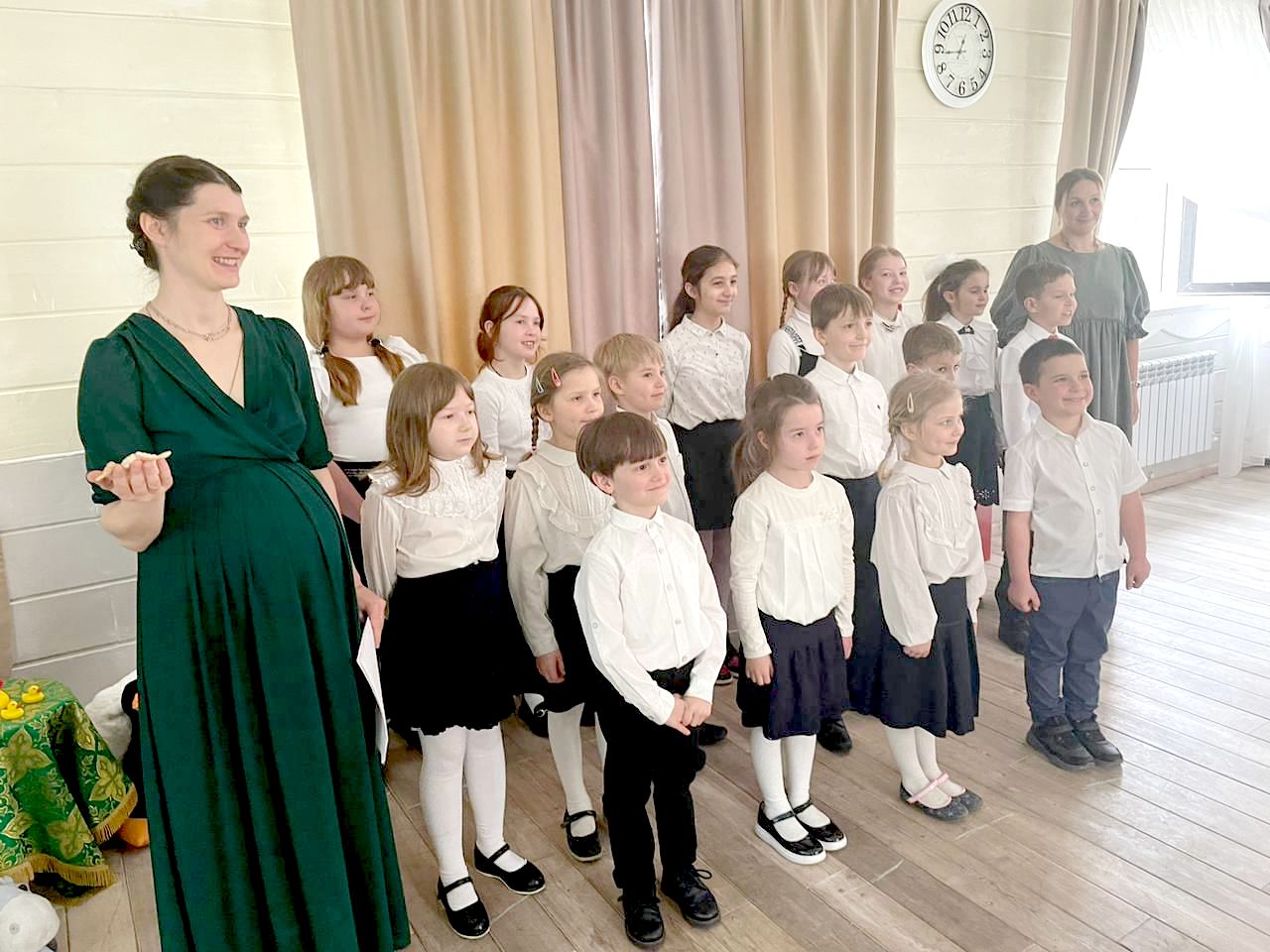 Перед началом выступления, приуроченного к продолжающимся пасхальным торжествам и празднованию Недели жен-мироносиц, участников и зрителей поприветствовал клирик храма священник Иннокентий Семенов. Вместе с праздничными поздравлениями прозвучало и пожелание взрослым поучиться у детей их умению глубоко и искренне переживать и радоваться.