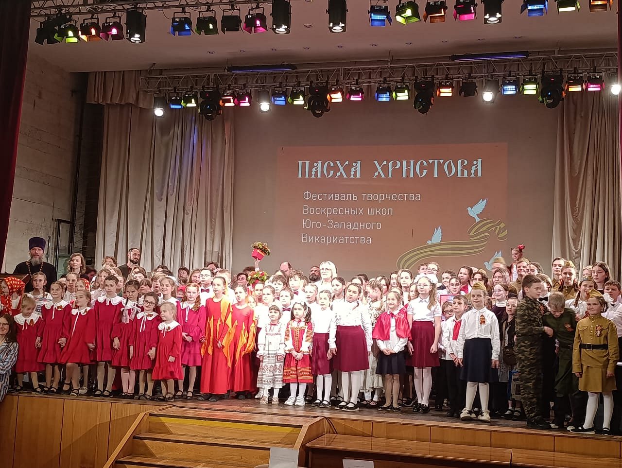 17 мая 2025 года по благословению и.о. настоятеля храма Великомученицы Анастасии Узорешительницы в Тёплом Стане иерея Димитрия Борсука детский хор Воскресной школы под руководством Марии Вадимовны Никулкиной принял участие в Викариатском Фестивале Воскресных школ «Пасха - День Победы».