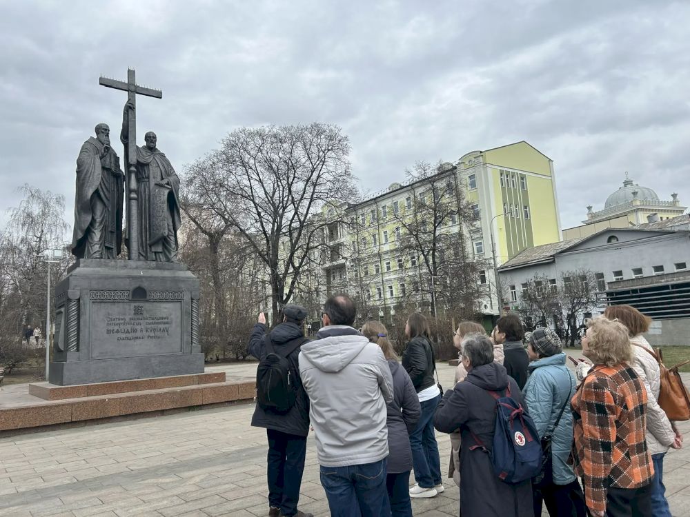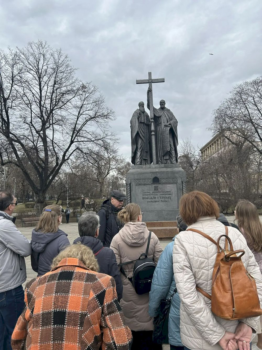 Завершилась историческая прогулка возле памятника святым Кириллу и Мефодию.