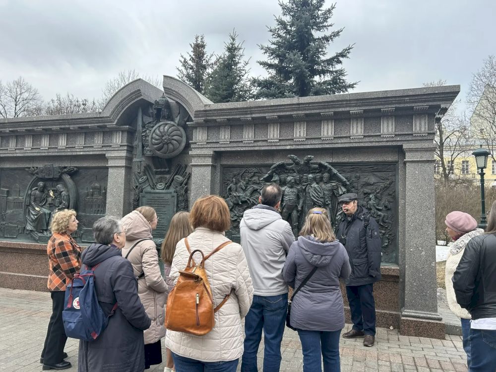 На всех остановках Евгений Игоревич рассказывал историю жизни этих выдающихся людей, удостоившихся чести быть запечатлёнными в памятниках на центральной площади столицы.