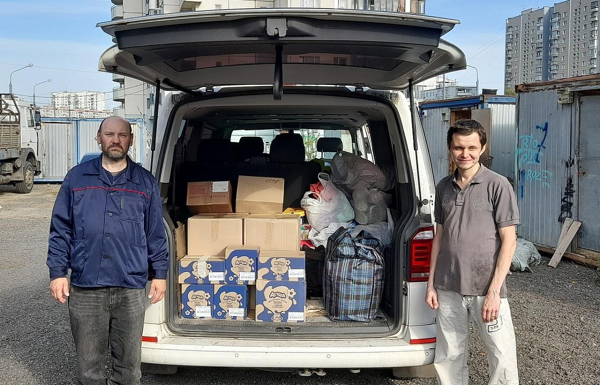 добровольцы упаковали и отвезли в штаб по сбору гуманитарной помощи «Москва Помогает» по адресу ул. Варшавское шоссе, дом 76, корпус 2.