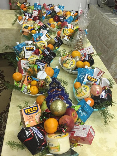 Добровольцы пропели праздничный тропарь и колядки, вручили Рождественские подарочные наборы из продуктов, сладостей и фруктов, а также украшения на елку, сделанные руками детей из Воскресной школы.