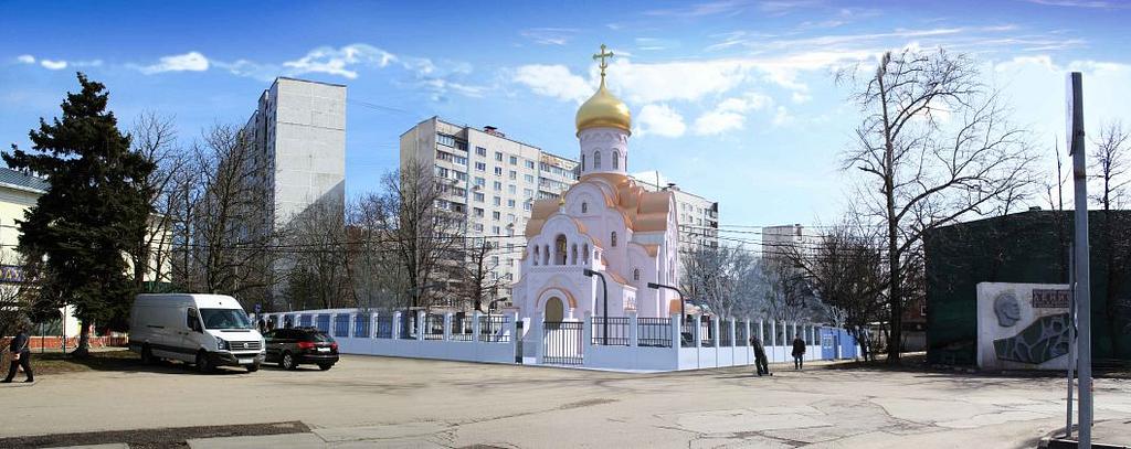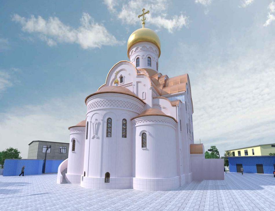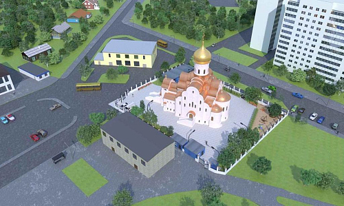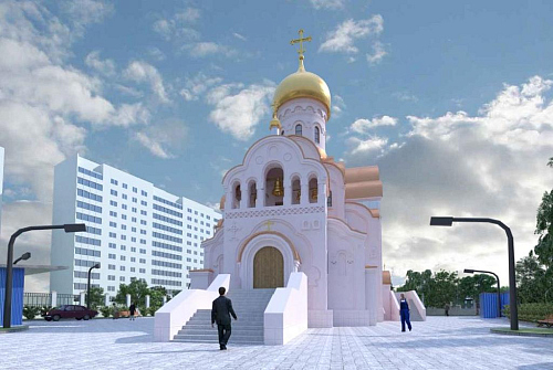 Храм и приходской дом запроектированы в едином объеме. Храм одноглавый, со звонницей, размещенной над главным входом, вместимостью 500 человек.