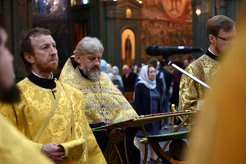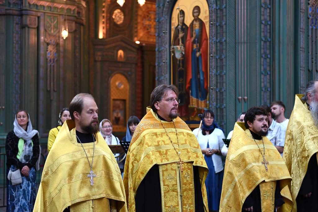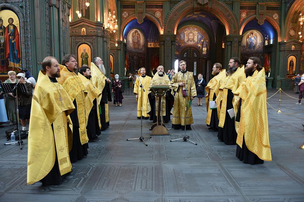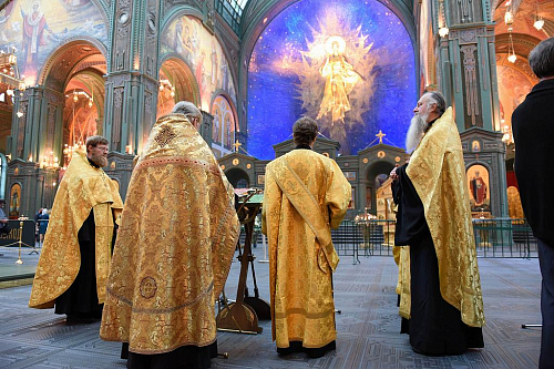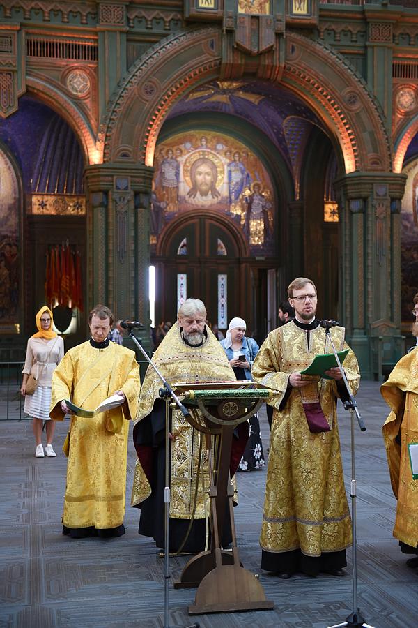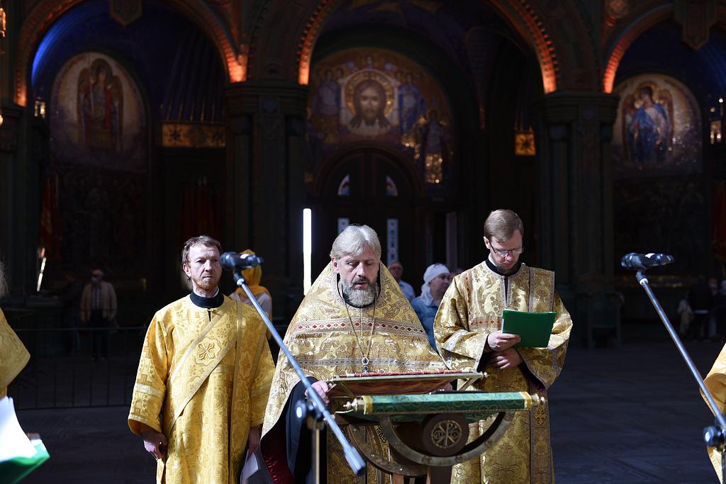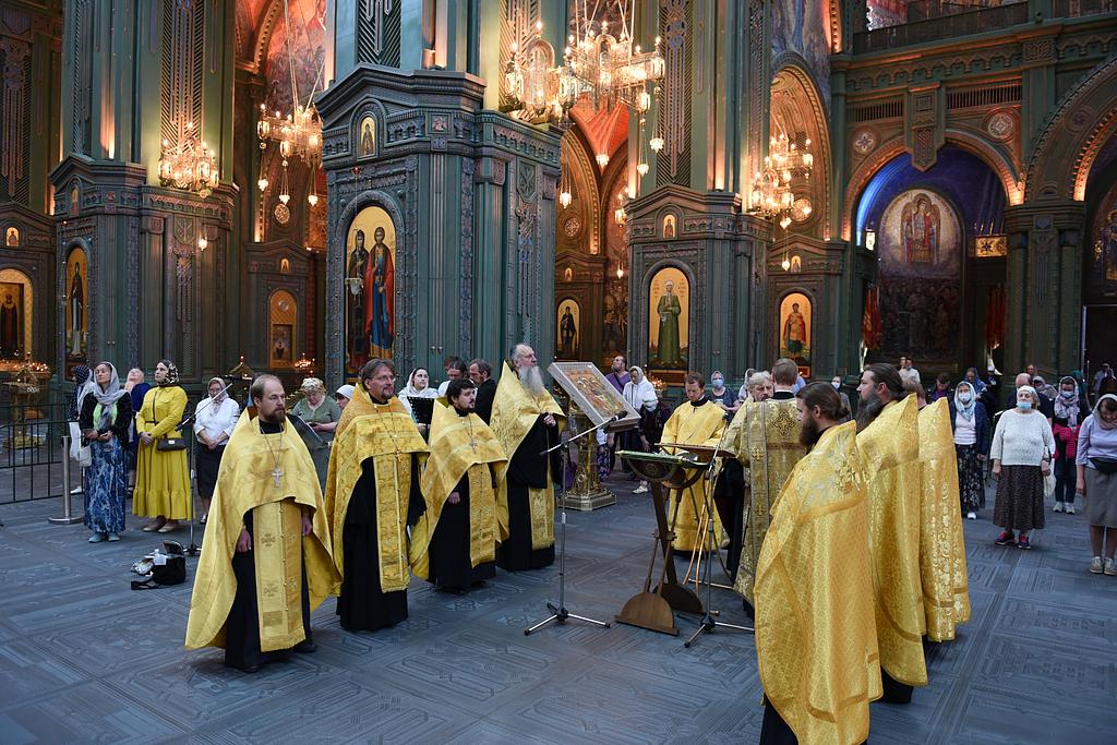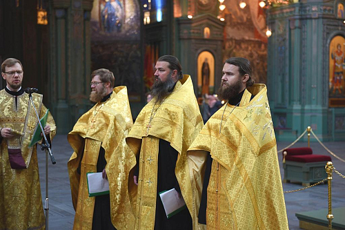 1 сентября в Патриаршем соборе во имя Воскресения Христова - Главном храме Вооруженных сил Российской Федерации благочинный Андреевского церковного округа, настоятель храма Живоначальной Троицы в Старых Черемушках, протоиерей Николай Карасев, возглавил молебное пение с чтением акафиста святителю Луке Крымскому.