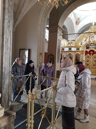 - посетили Церковь свт. Тихона, Патриарха Всероссийского, в которой приложились к иконе свт. Тихона с частичкой мощей, послушали житие Патриарха, узнали интересные факты о духовном исповедническом подвиге, и частично посмотрели, так как основные сюжеты изображены на стенах, по периметру Церкви;
