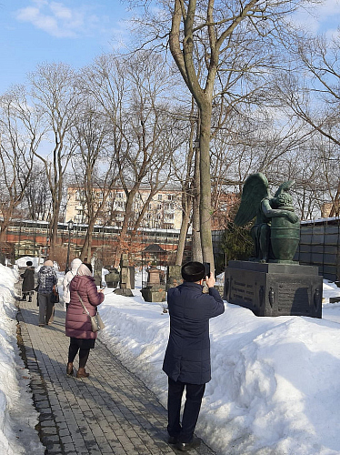 - прошлись по некрополю и послушали рассказы о ярких, порой трагичных, судьбах известных людей, похороненных на Донском кладбище;
