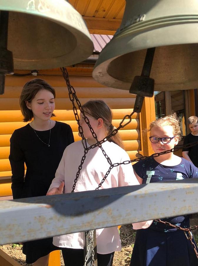 Экскурсию по храму провела педагог Воскресной школы Наталья Александровна Астахова, учащимся школы был представлен мастер-класс по колокольному звону, который показала выпускница Воскресной школы храма Полина Ежова.