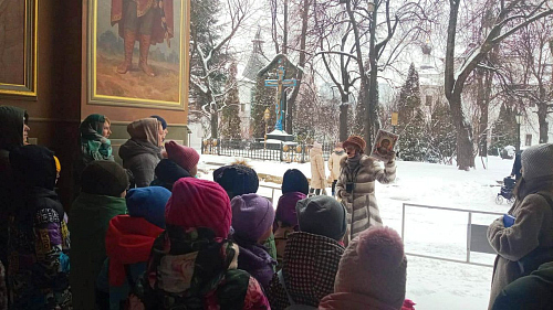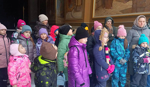 Затем экскурсия продолжилась в Спасо-Преображенском соборе, где находится чудотворный образ Богородицы Всецарица. Ребята познакомились с росписями и иконами собора.
