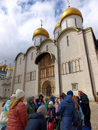 Для учащихся Воскресной школы, их родителей и слушателей Богословских курсов были организованы увлекательные экскурсии, в ходе которых все смогли узнать историю и особенности архитектуры Кремля, Соборной площади и величественного Успенского Собора. Профессиональные экскурсоводы поделились деталями о строительстве Собора, его структуре, росписи и древних иконах и, конечно, о раках с мощами великих русских святителей - Ионы, Иова, Филиппа и многих других.