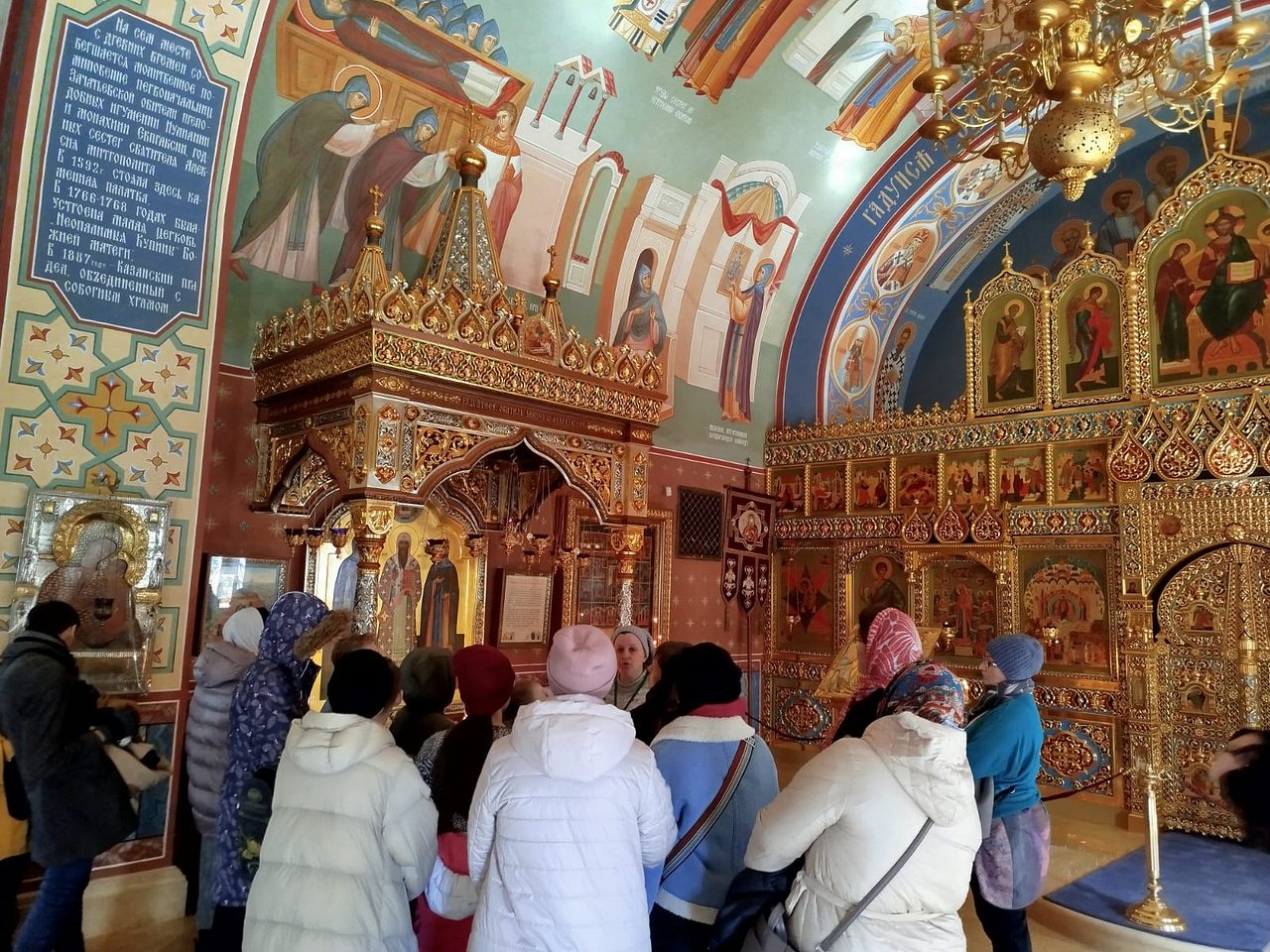 Ребята и взрослые смогли приложиться к святыням и чудотворным иконам, среди которых образ Богоматери "Милостивая", икона святых праведных Богоотец Иоакима и Анны, большая частица мощей святого праведного Лазаря Четверодневного, гробница преподобных Иулиании и Евпраксии Московских.