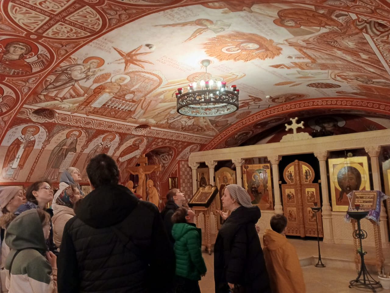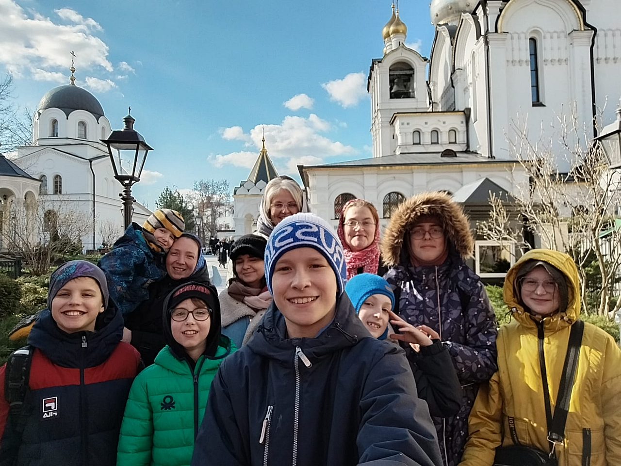 13 апреля 2025 года, в Вербное воскресенье, по благословению и.о. настоятеля храма Великомученицы Анастасии Узорешительницы в Тёплом Стане иерея Димитрия Борсука воспитанники Воскресной школы с родителями, участники молодежной организации и Богословских курсов посетили Зачатьевский ставропигиальный женский монастырь.