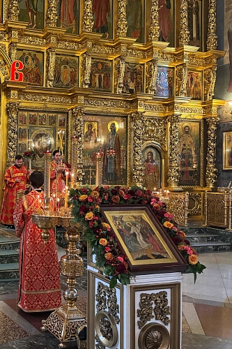 Вечернее богослужение прошло в радостной атмосфере продолжающихся Пасхальных торжеств. Праздничные церковные песнопения исполнил мужской хор храма преподобной Евфросинии.