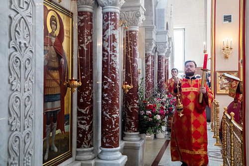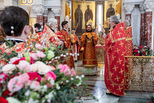 14 апреля 2026 года, во вторник Светлой седмицы, Иверской иконы Божией Матери, епископ Раменский Алексий, викарий Святейшего Патриарха Московского и всея Руси, управляющий Юго-Западным викариатством г. Москвы, возглавил Литургию святителя Иоанна Златоуста в храме святого праведного воина Феодора Ушакова в Южном Бутове.