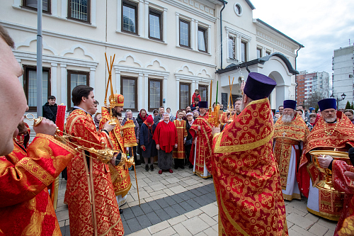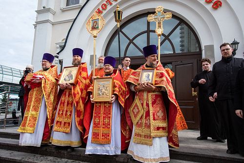 По окончании Божественной Литургии был совершён крестный ход вокруг храма.