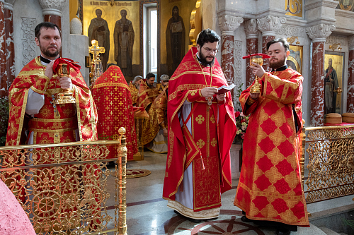 Его Преосвященству сослужили: протоиерей Анатолий Кожа, благочинный Параскево-Пятницкого округа г. Москвы, настоятель храма великомученицы Параскевы Пятницы в Качалове; протоиерей Николай Карасёв, благочинный Андреевского округа г. Москвы, настоятель храма Живоначальной Троицы в Старых Черёмушках; протоиерей Виктор Сандар, настоятель храма святого праведного воина Феодора Ушакова в Южном Бутове; настоятели и духовенство храмов викариатства.