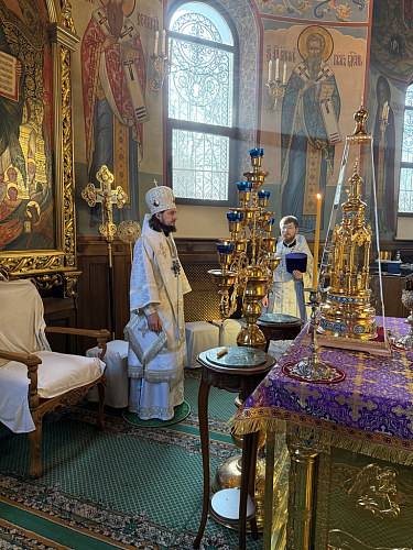 По окончании Литургии архипастырь в сослужении духовенства храма совершил панихиду, а затем обратился к собравшимся в храме верующим. Владыка Алексий поздравил всех с родительской субботой – первой из трёх, установленных в период Великого поста, и напомнил о необходимости задуматься не только о своём временном земном существовании, но и о последующей загробной участи каждого из наших близких. Церковь учит, что смерть человека – это лишь переход в жизнь вечную. К сожалению, не все бывают подготовлены к этому моменту должным образом, кто-то не успевает покаяться и попросить прощения у тех, кого чем-нибудь обидел. Преосвященнейший епископ призвал молиться об усопших с верою в то, что Господь помилует их. Спаситель пришёл в мир, чтобы мы все могли наследовать жизнь вечную; Он же и являет нам пример усердной молитвы. Будем просить Господа укрепить наши силы для молитвы о ближних, для прохождения поприща Святой Четыредесятницы и дальнейшего несения возложенного на каждого жизненного креста.