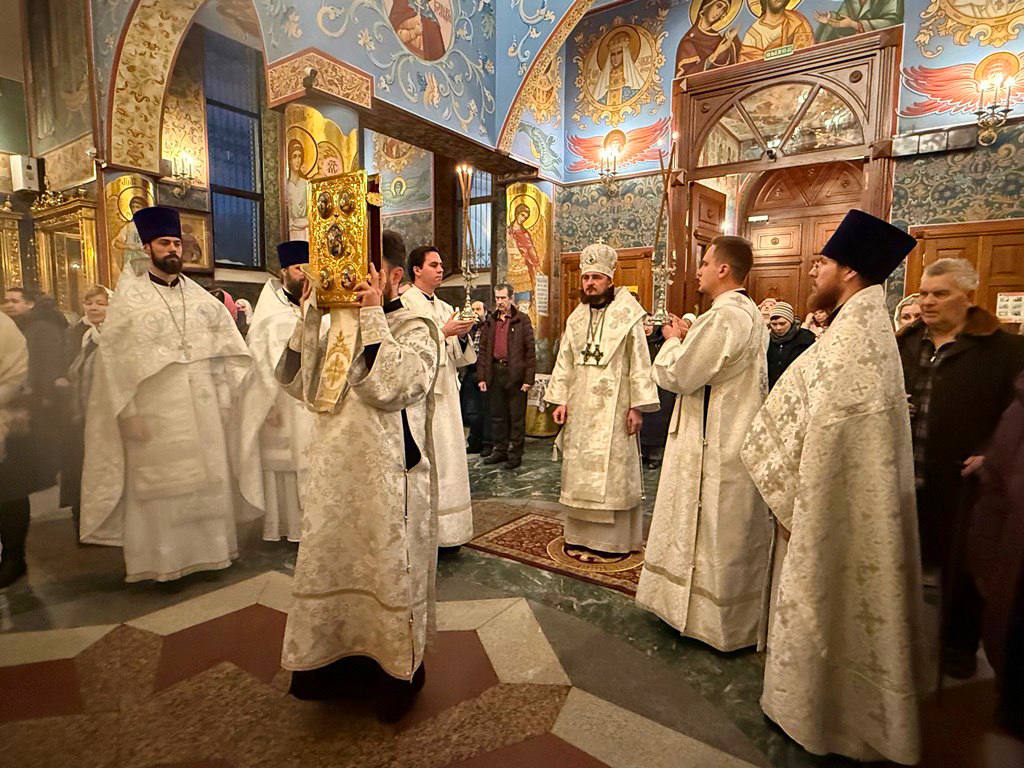 На сугубой ектении были возглашены особые прошения об Отечестве и защитниках его, об утверждении всех в вере, единомыслии, здравии и силе духа. Преосвященнейший Владыка вознёс молитву о Святой Руси.