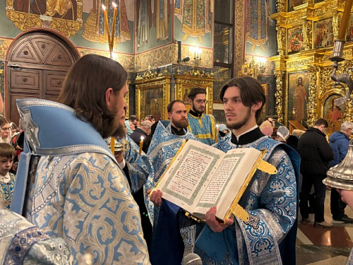 За богослужением пел мужской хор храма преподобной Евфросинии Московской (регент Даниил Кузин). После чтения Евангелия Воскресную песнь («Воскресение Христово видевше...») соборно исполнили духовенство и все присутствующие.