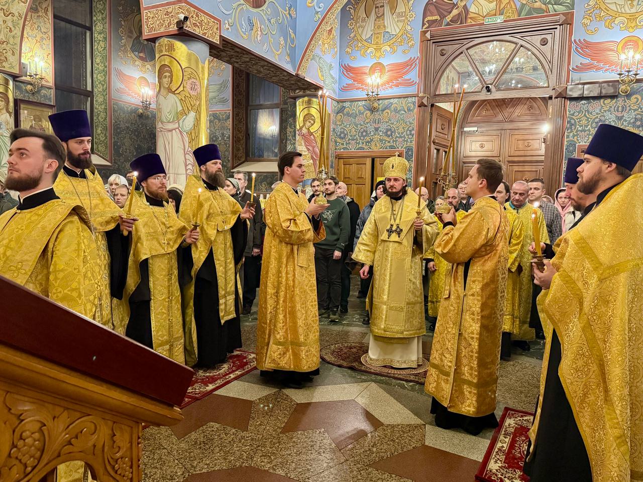 За богослужением пел мужской хор храма преподобной Евфросинии Московской (регент Даниил Кузин). После чтения Евангелия Воскресную песнь («Воскресение Христово видевше...») соборно исполнили все присутствующие.