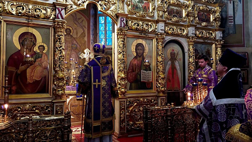 Его Преосвященству сослужили: настоятель храма протоиерей Николай Улович и диакон Константин Бабак, клирик храма преподобной Евфросинии, великой княгини Московской, в Котловке.